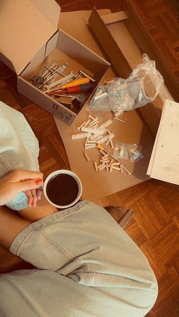 Smaller components include various screws, bolts, and locking washers. Distinguish between different screw sizes – the manual will detail their specific uses. Note any decorative caps or covers. Confirm you have all listed parts; discrepancies should be addressed immediately. Accurate identification prevents incorrect assembly and ensures structural integrity.