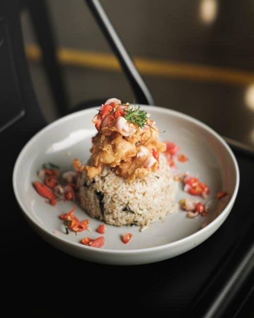 The Elite Gourmet rice cooker PDF manual comprehensively details safe operation, component identification, and setup procedures; Expect detailed cooking instructions for various rice types, steaming guides, and cleaning/maintenance advice.
